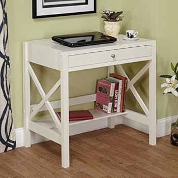 Features sturdy trestle style supports; Our writing desks for small spaces are great antique white corner desk. Choose legs made of materials like metal or bamboo in more modern styles or traditional looks. Efforts are made to reproduce accurate colors, variations in color may occur due to computer monitor and photography; The desk helps you get ready to begin your workday.